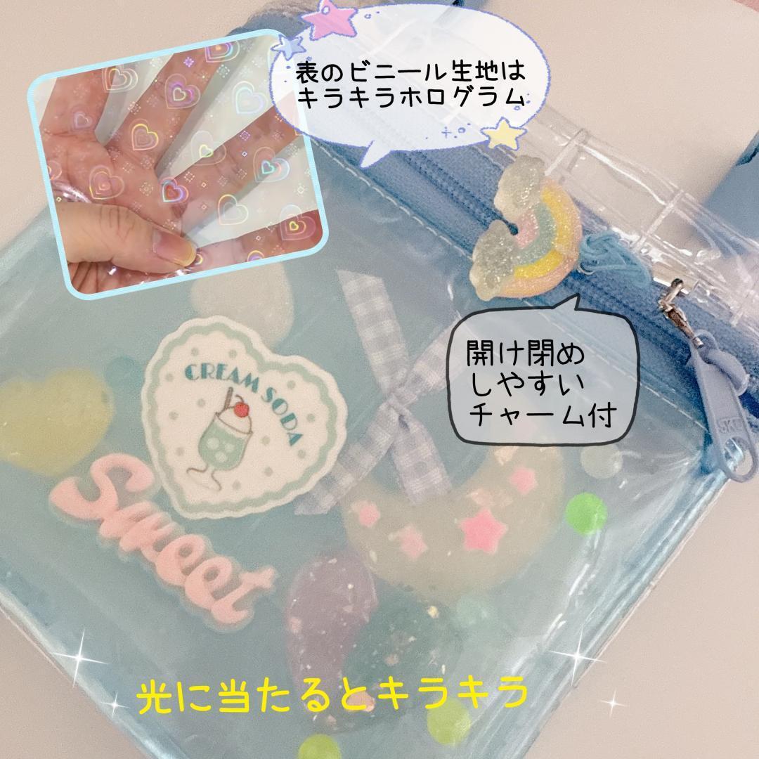 78)ホログラム♡ シャカシャカ移動ポケット ビニール 透明 ブルー ポシェット