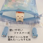 クリップでお洋服にパチンと付けるか、ポシェット用の紐で斜めかけができます。消毒液なども入る入園入学の必須アイテムです♪