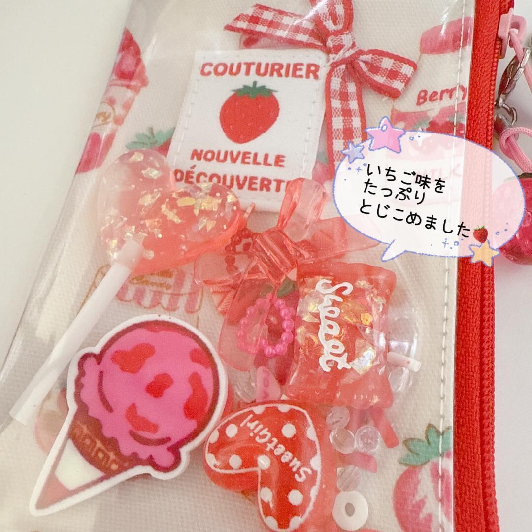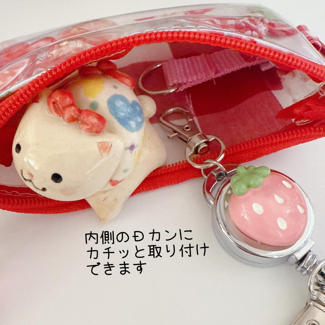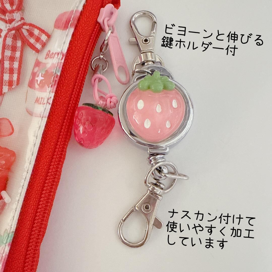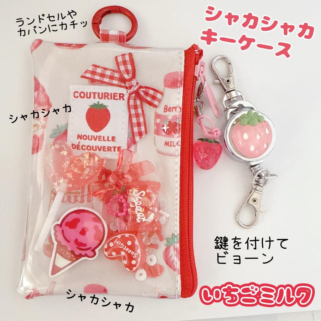 760)シャカシャカキーケース いちごみるく 赤 リールキーホルダー パスケース