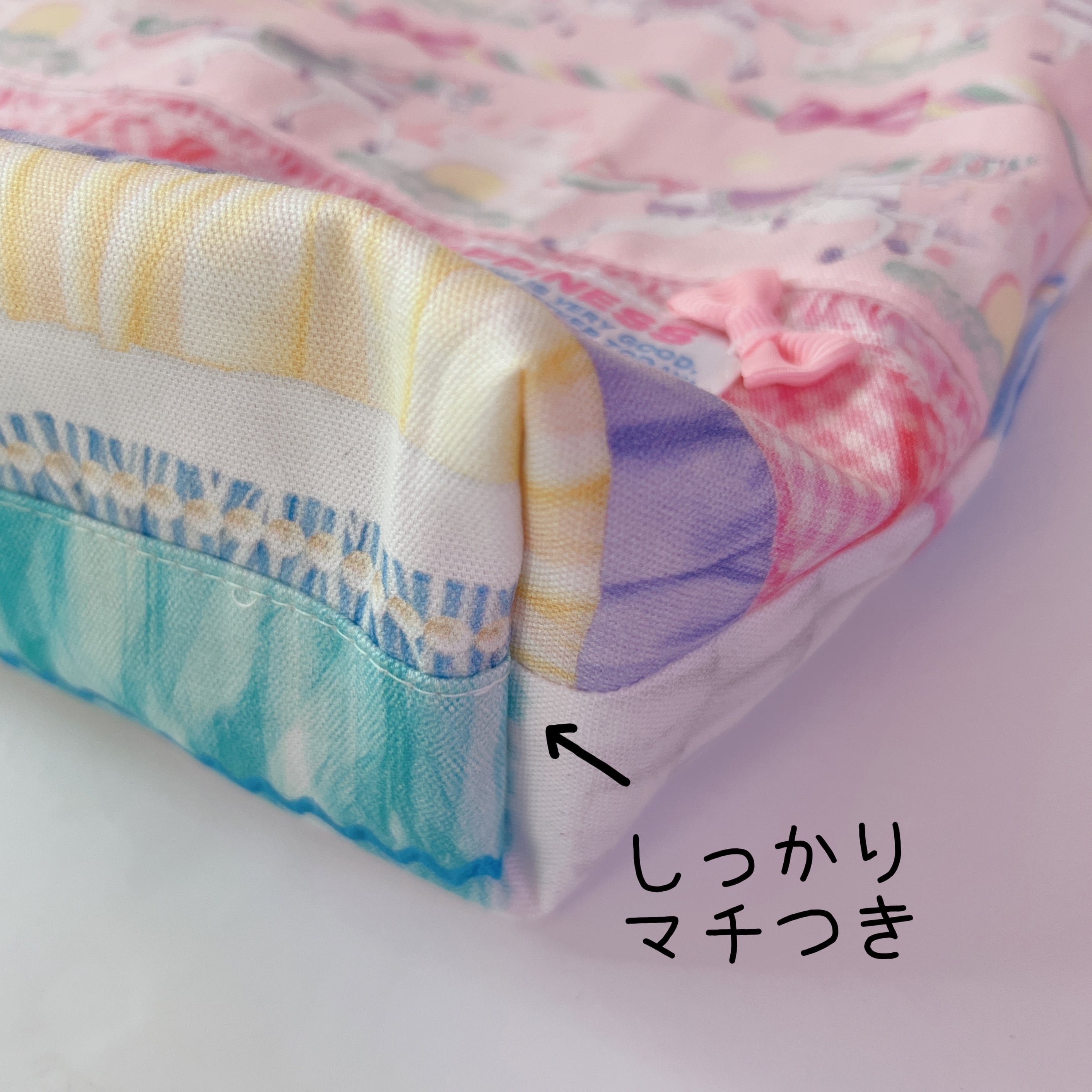 ③体操着袋(ナップサック)(約㎝)大き目ではなく程よい大きさになります。ナップザックにしてありランドセルの上からも背負えます。