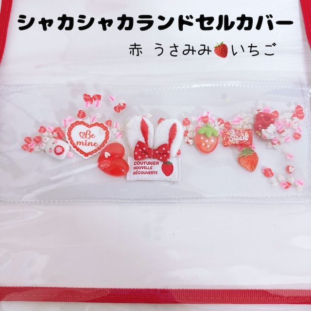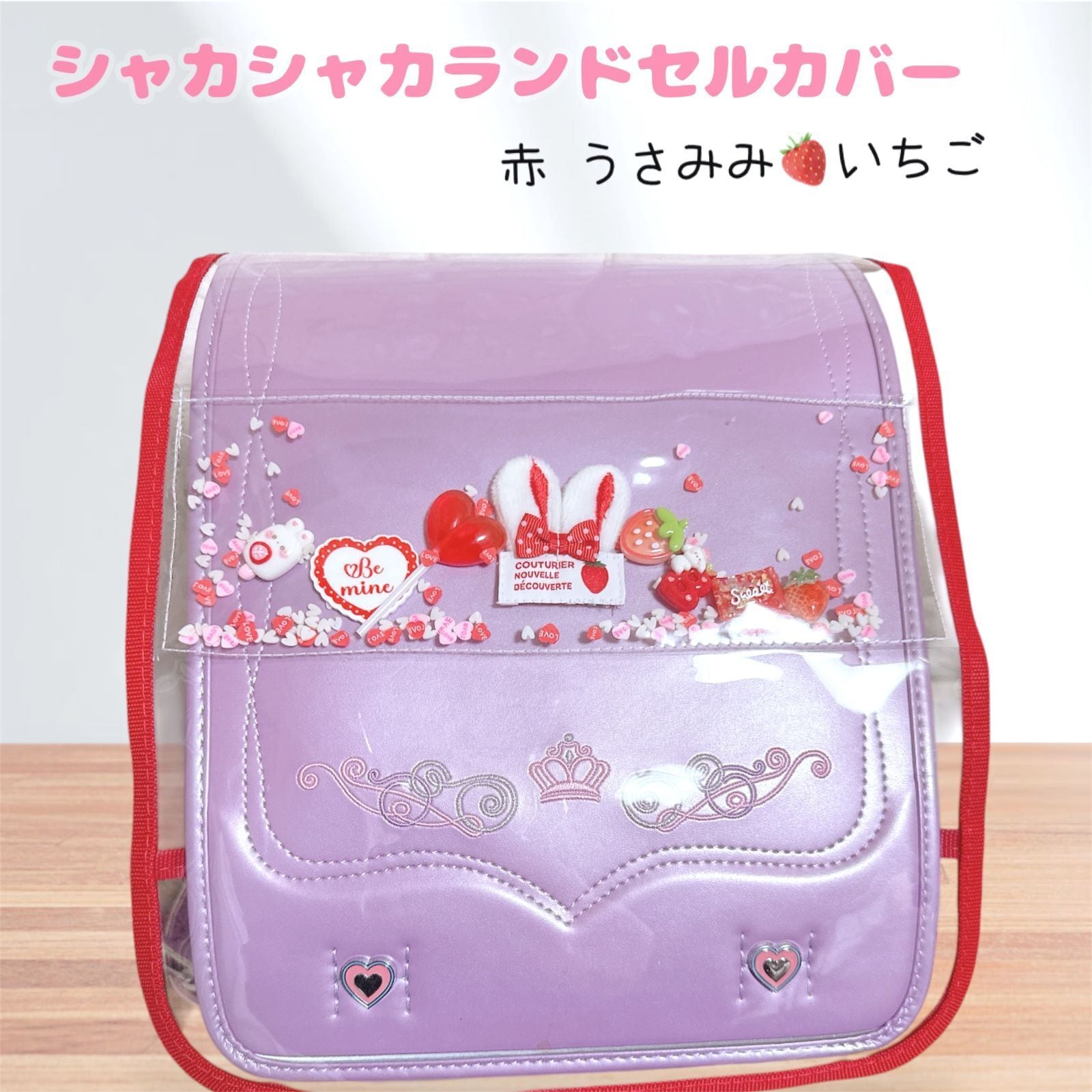 ⑥シャカシャカランドセルカバー うさみみ 赤 うさぎ いちご ロリポップ パーツ入 透明